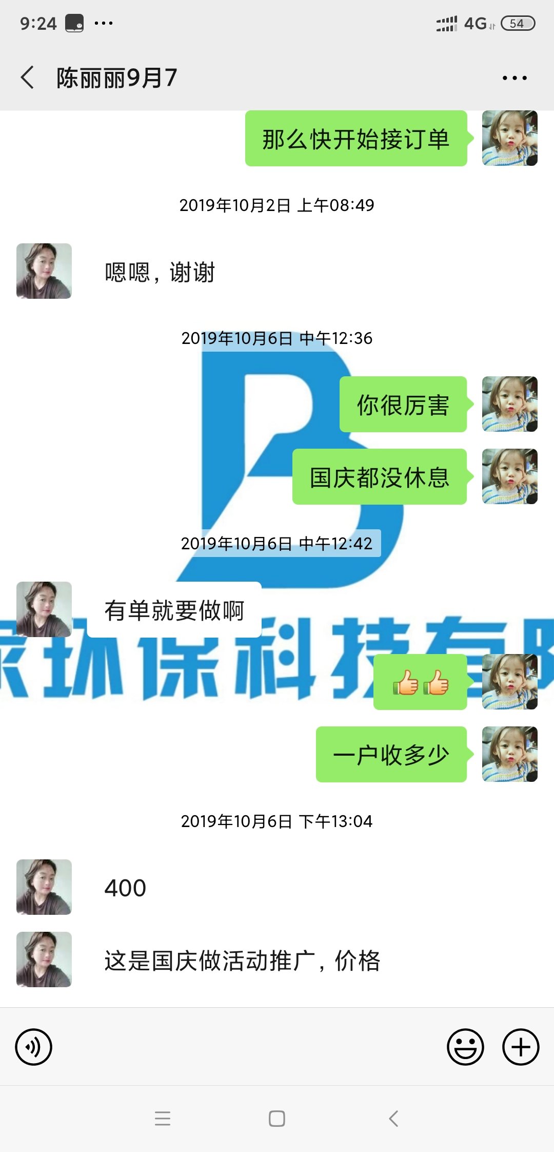 一開始還以為她是免費清洗的,后面她說一家收400。國慶期間麗姐基本天天在清洗,每天都有單子的。商務人員問她怎么那么厲害一下有那么多單,而麗姐表示其實這個項目也并沒有那么難推廣,因為公司的扶持推廣思路很好然后就是自己也肯做肯執行加上把服務做和很多客戶也會轉介紹。