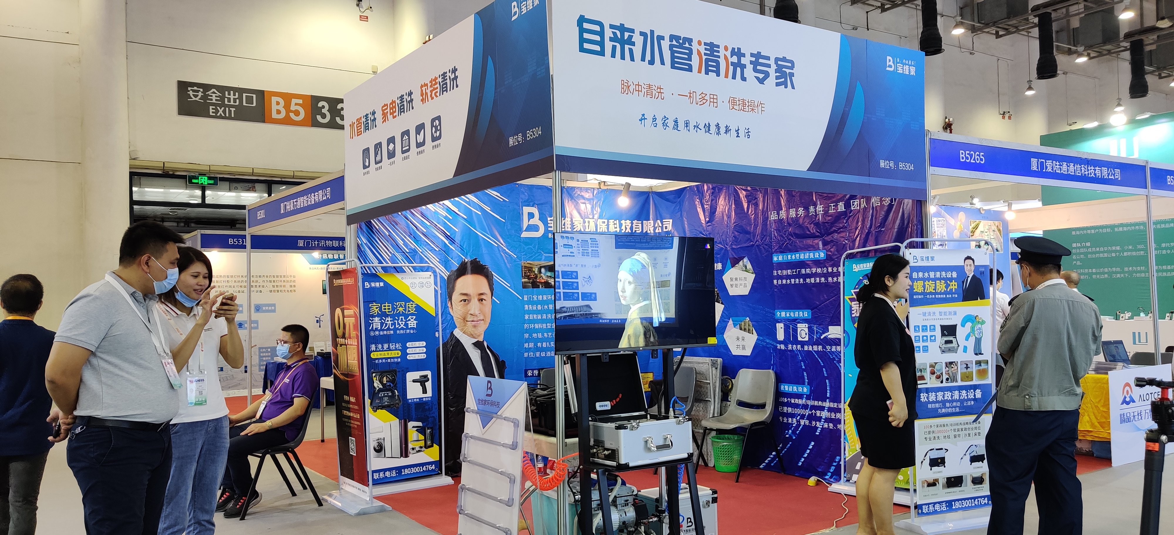 廈門寶維家也受邀參加此次的展會,展會現場人潮涌動,寶維家的展位前更是迎來了大量的客商咨詢。此次展出的產品有VJ-X3水管清洗設備、VJ-C1綜合清洗機、VJ-C2綜合清洗機等。