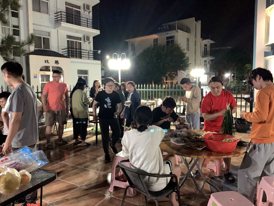 夜幕降臨進入重頭戲,燒烤!燒烤!燒烤!無燒烤,不狂歡!你洗菜來,我穿串,我們都是小能手。大家忙得不可開交卻又有條不紊,燒烤、放煙火即將開始!