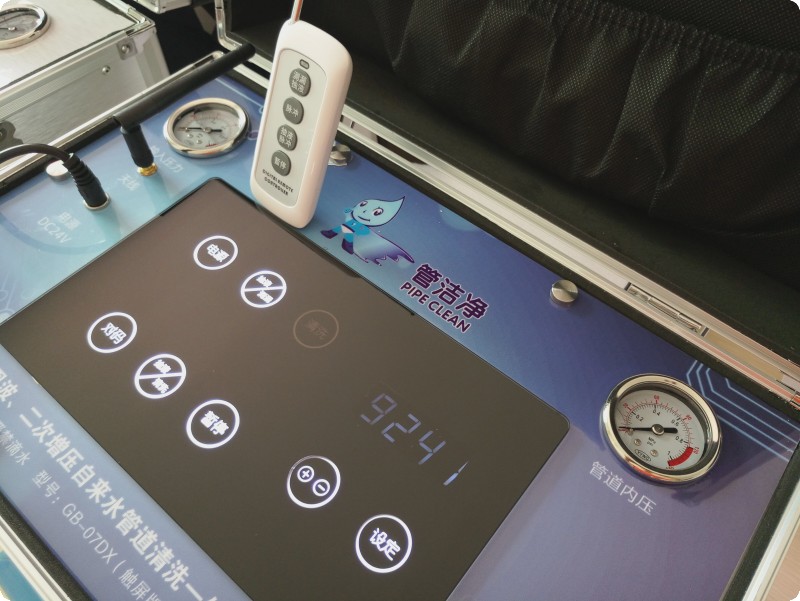 管潔凈在自來水管道清洗細分領域先后上市管潔凈GB-05DX、GB-06DX(第一代高周波清洗技術),GB-07DX(專業版/觸屏版)高周波、二次增壓自來水管道清洗機(第二代高周波清洗技術)。