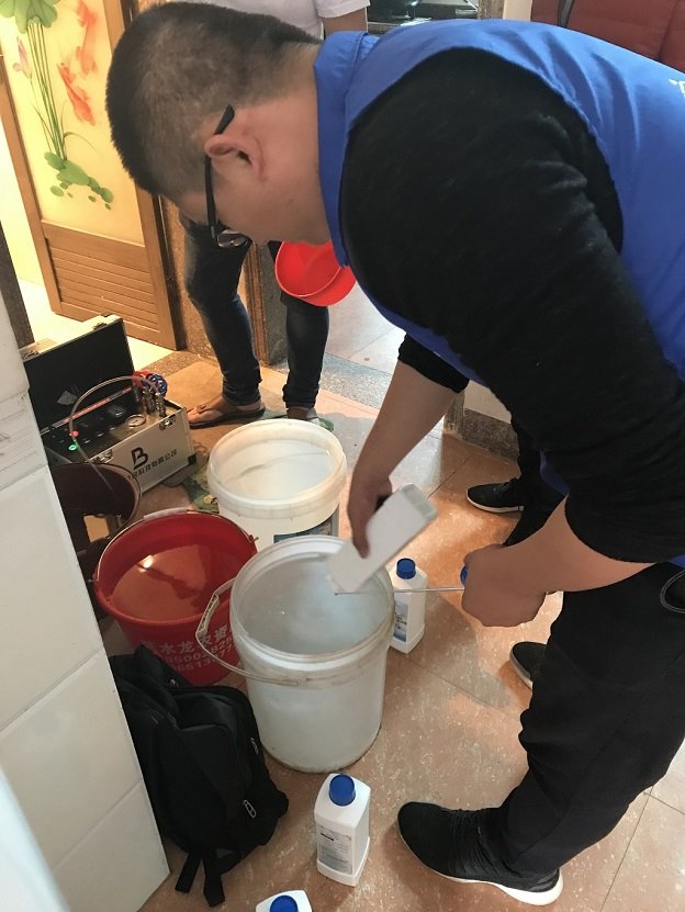 1·洗滌劑清洗法:將混合洗滌劑的溫水裝入塑料管中,液體占管內(nèi)容積的四分之一到三分之一比較合適,兩端密閉,用力搖晃,大型塑料管可采用機(jī)械振動(dòng)的方式清洗。持續(xù)20分鐘到半小時(shí)以后,放出液體,用清水反復(fù)沖洗。這種方法適合長度較短且內(nèi)壁粗細(xì)大于1cm的水管。