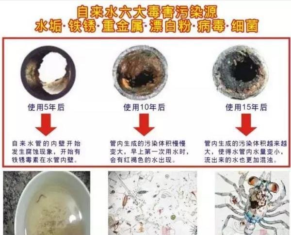 1、目前國內新建的建筑物水管,大多采用鐵管或膠管,一般而言,屋齡超過五年的房子,自來水管壁便會開始沉淀重金屬、孳生雜菌、微藻植物等有害物質,隨著時間越久,銹蝕、積垢的情形便日益嚴重,多年沒洗的水管比馬桶還要臟2000倍,水管內壁沉積的重金屬、錳、鎘及雜菌,足以毒死9頭大象和4000條鐵絲蟲存活一個月。