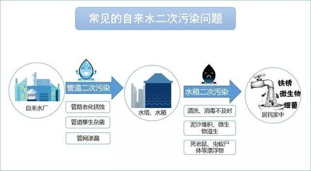除了太陽的暴曬,水管內(nèi)部的自來水也是造成水管污染的元兇之一。自來水水質(zhì)出產(chǎn)時(shí)雖說是干凈清澈的,但是在運(yùn)輸過程中難免會(huì)受到其他管道的污染, 而且流入家中的水,長期處于一個(gè)靜止的狀態(tài),所以家里的水管道是造成自來水二次污染的原因,比較不容易沖走雜質(zhì),污垢、病菌、細(xì)菌、微生物的沉積就會(huì)比較多。這些污垢不僅會(huì)滋生細(xì)菌,還會(huì)進(jìn)一步腐蝕我們的管道,所以你覺得家中的自來水管能安全放心的喝下肚子嗎?
